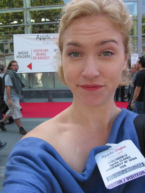 | Major Event 2: Apple Expo Paris | My trip, purely by coincidence, ended up being at the same time as the 2003 Apple Expo Paris. I went. It was so cool. There were two entrances: one for people with badges and one for people without. Do you know which kind I was? Click image at left to find out. | |||